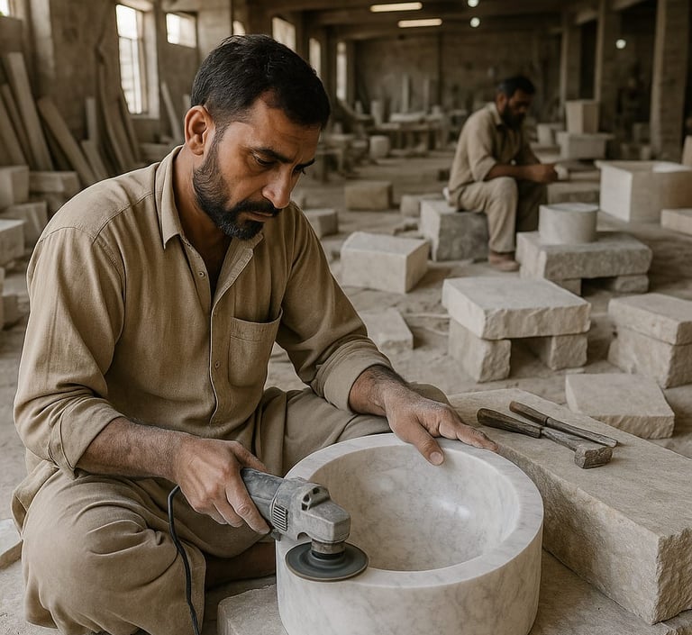 Our manufacturing process transforms natural stone into luxury masterpieces. Every product is crafted by expert artisans in our state-of-the-art facility, ensuring flawless finishing, durability, and elegance. With over 30 years of experience, we deliver handcrafted marble creations trusted by international brands and wholesalers worldwide.