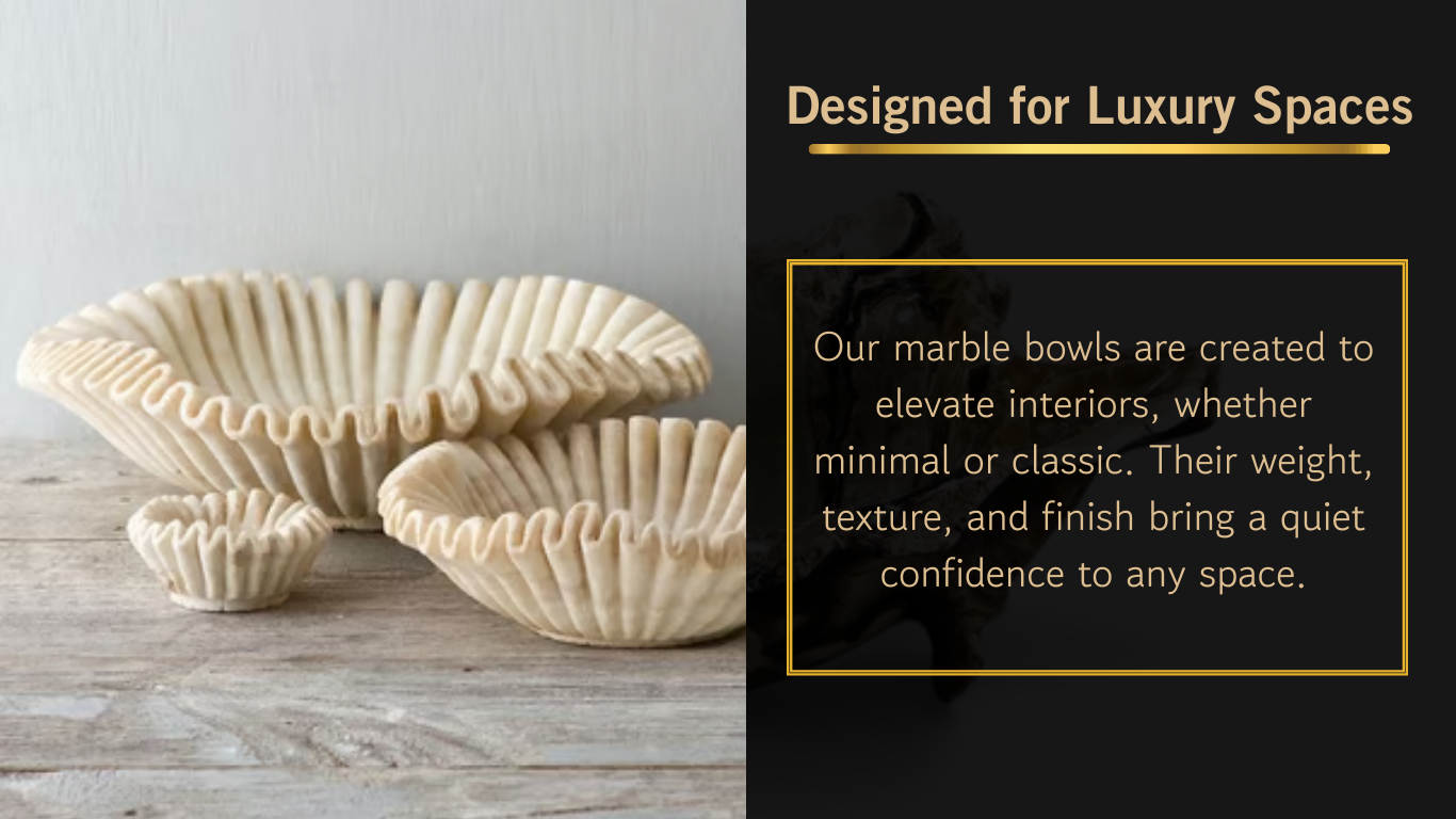 Each curved large bowl is carved from a single solid block of natural marble, allowing the veins, depth, and movement of the stone to appear more dramatic—making every piece a true statement of natural art.