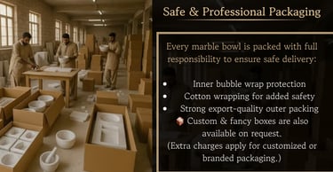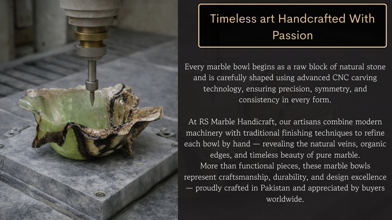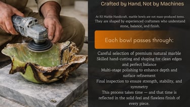 Our curved marble bowls are shaped by skilled craftsmen, not mass machines. From stone selection to carving and final polishing, every step is handled with care, patience, and responsibility.
