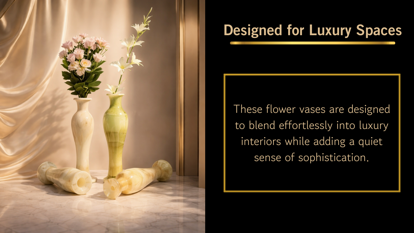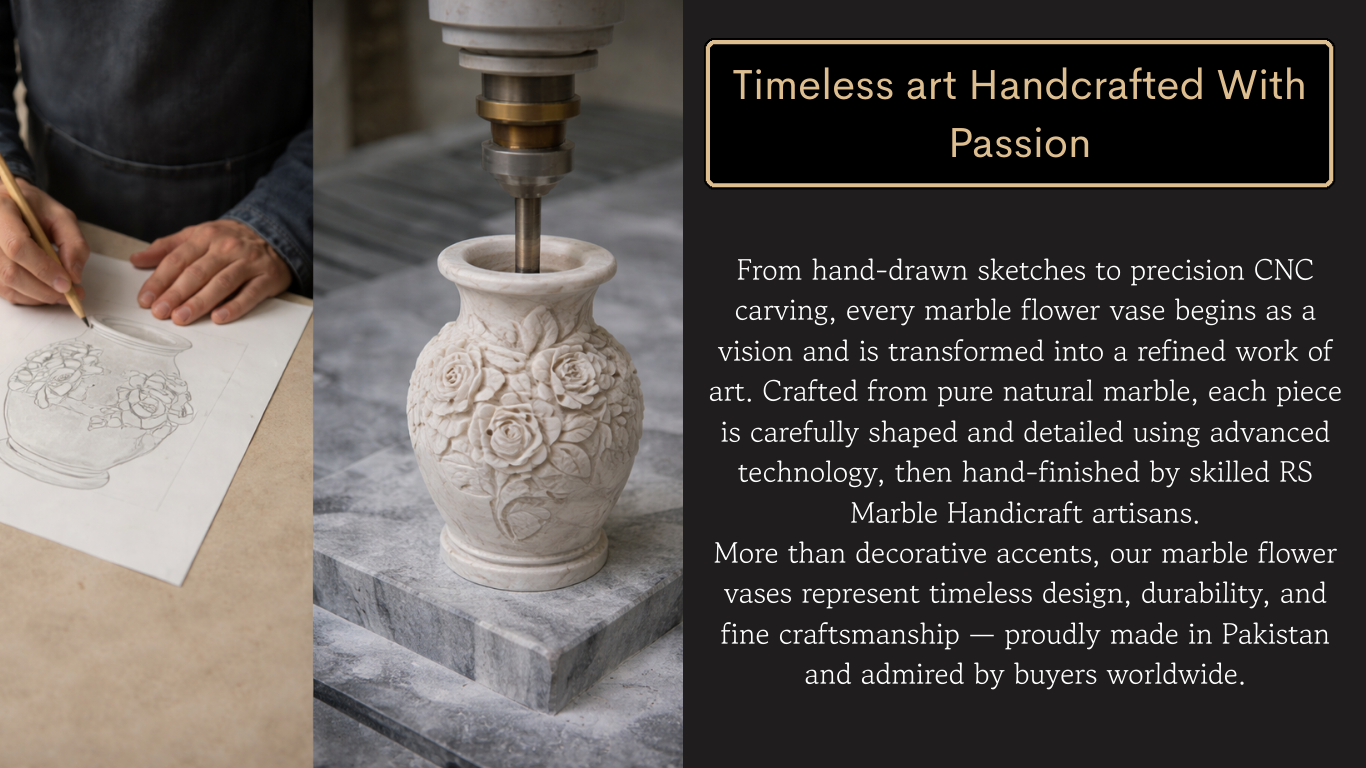 From stone selection to final polishing, every step is handled with patience and precision, resulting in vases that feel solid, elegant, and timeless.