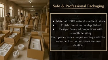 Each pair is carved from premium marble blocks, allowing the natural veins, tones, and character of the stone to remain visible and unique.