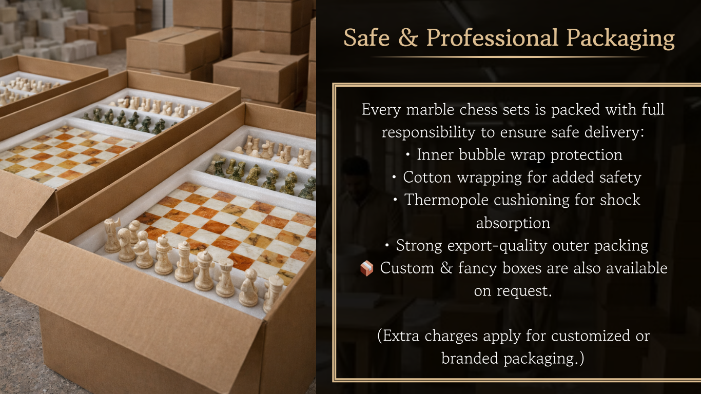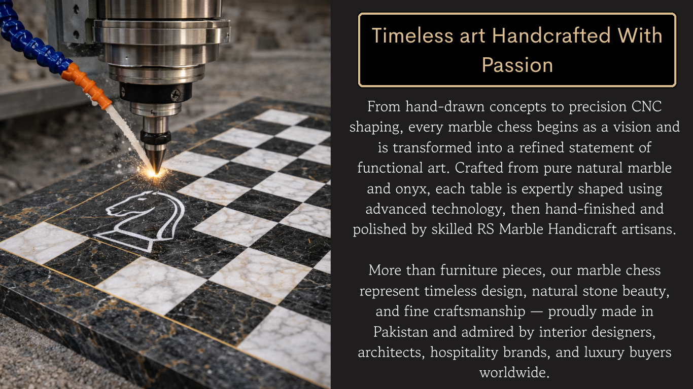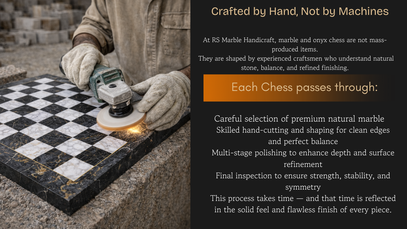 Our marble chess sets are a perfect blend of luxury craftsmanship and timeless design. Handcrafted from premium natural marble and onyx stones, each chess set reflects precision, durability, and refined aesthetics—ideal for luxury homes, offices, hotels, resorts, and high-end retail spaces.
